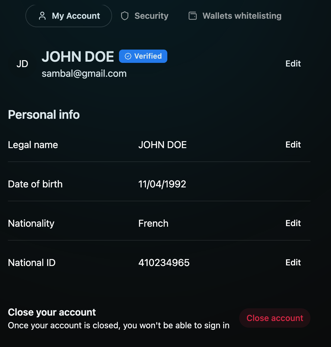 Most personal edits (like legal name or nationality) may require identity re-verification.
