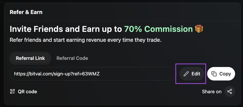 Go to Referrals → Referral Link and click on the editable link field.